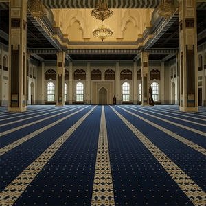 Acrylic, Polypropylene and woolen carpets are typically used in mosques because they can bear constant weight and foot traffic. They also feel greatly comfortable and retain warmth indoors for reduced AC usage. Acrylic and polypropylene carpets are highly resistant to stains as well.