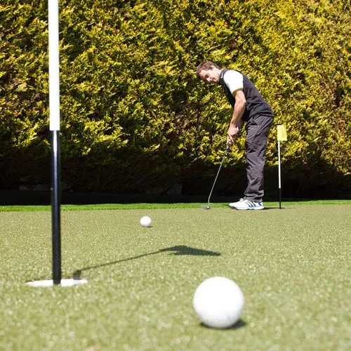Realistic 13mm artificial grass designed for golf practice. Child- and pet-friendly, low-maintenance, and ideal for creating a personal putting green at home or in gardens.