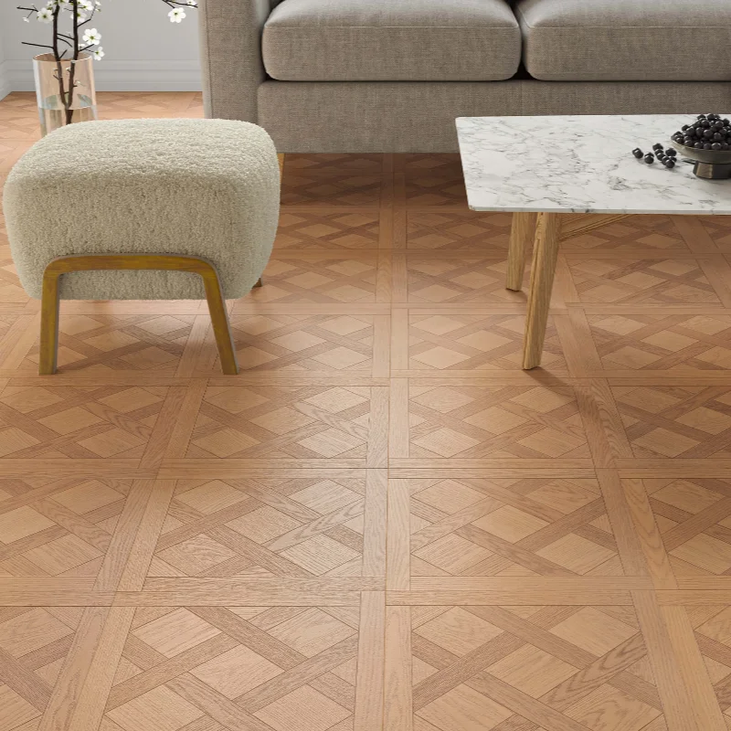 Prestige 12mm Chambre Versailles Laminate offers a sophisticated blend of rich wood tones and an intricate Versailles layout, bringing a high-end look to any interior. Its 12mm construction provides solid strength and a comfortable feel underfoot. With easy installation and dependable durability, it enhances your space with both style and performance.