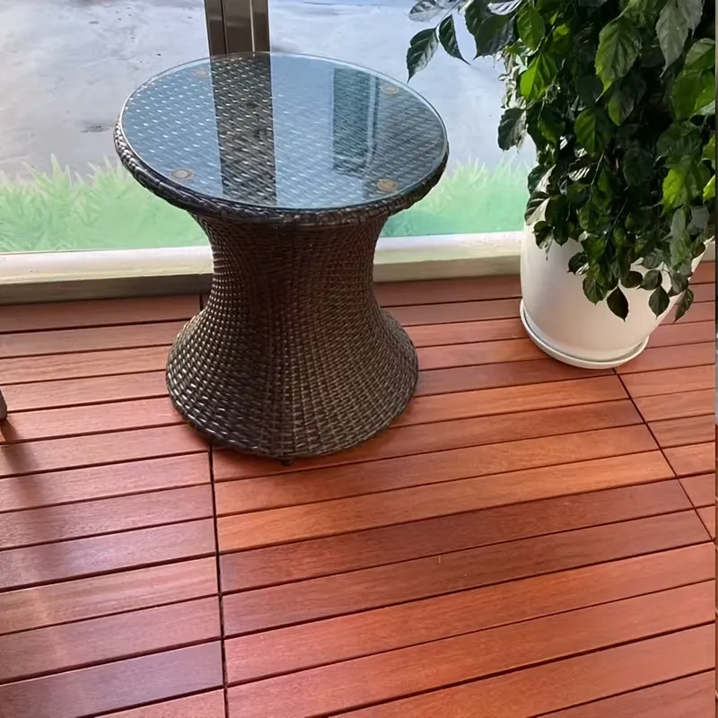 Set of 6 waterproof, rot-resistant WPC deck tiles for balconies and gardens. Easy to install with no dragon bones required, providing a stylish, durable, and low-maintenance outdoor flooring solution.