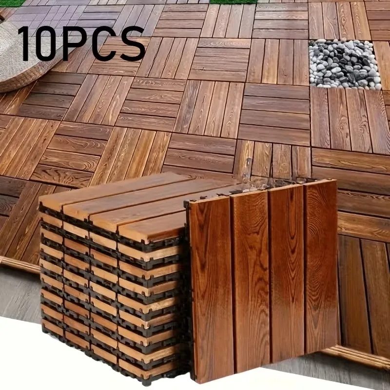 Set of 10 premium interlocking WPC deck tiles for easy self-installation. Durable and weather-resistant, ideal for outdoor patios, balconies, and indoor spaces, offering a stylish and low-maintenance flooring solution.